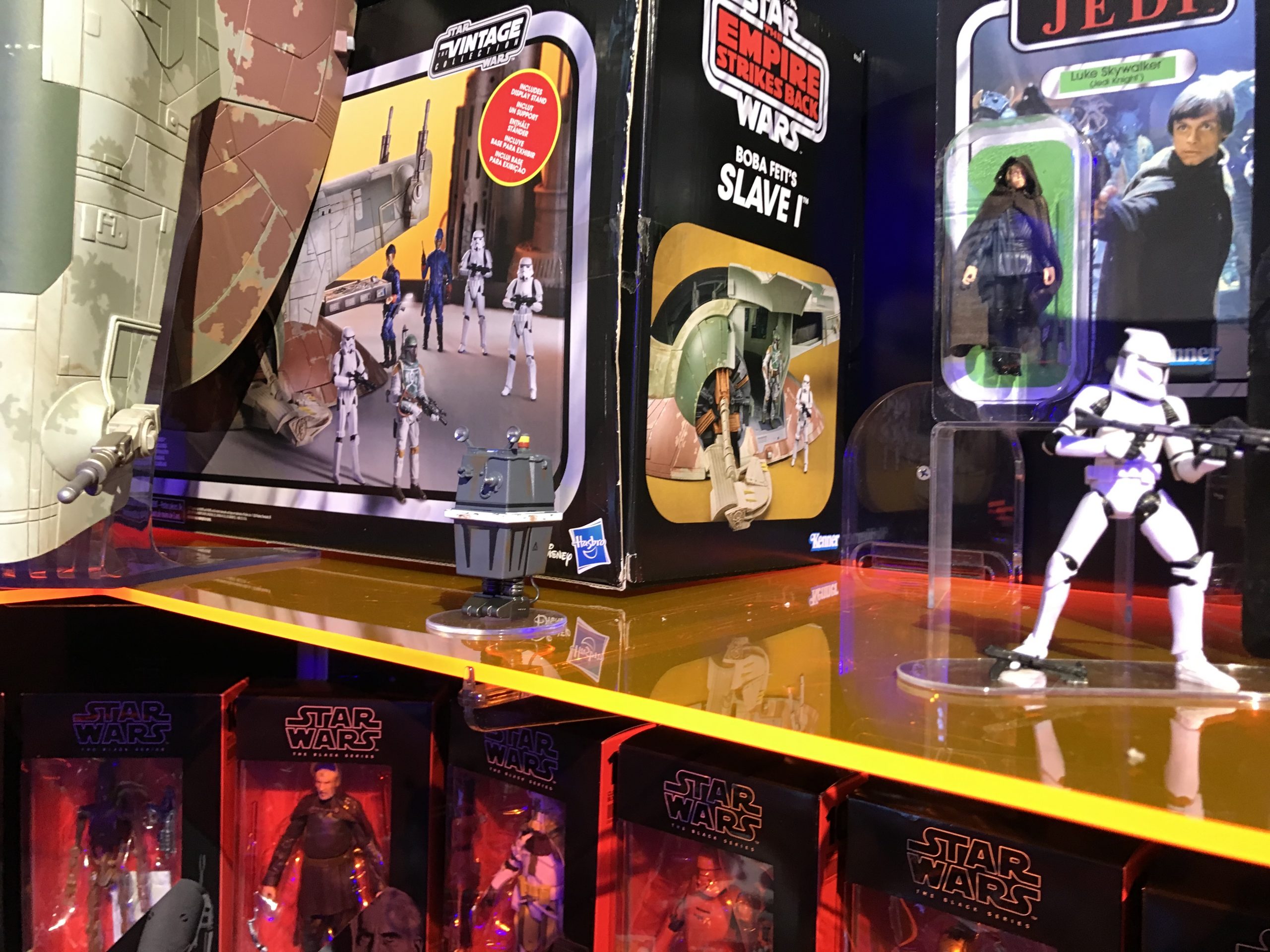 As expected, The Child (a.k.a. Baby Yoda), was all over the Star Wars display. But, there was also a surpise appearance by Slave I. The Transformers area featured reappearances by some celebrated old friends Skorponok and Sky Lynx. The Marvel area was headlined by the product for the new Black Widow Movie, but also featured cool new X-Men and Spider-Man Marvel Legends assortments. The Ghostbusters area was full of nostalgia, showing off the Real Ghostbusters tribute line, as well as the 6″ Proton Collection, based on the original film. The Power Rangers area also featured the latest figures and Zords from the current season, as well as new figures in the Lightning Collection, spanning the entire history of the show.